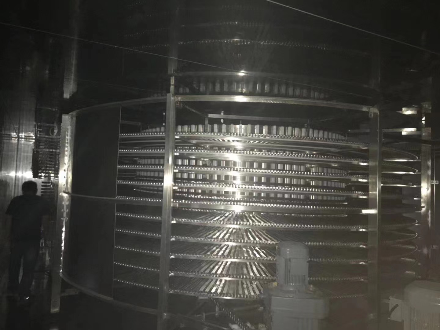 速凍隧道亦稱隧道式速凍機(jī),和速凍庫原理一樣,大的區(qū)別就是速凍隧道可以實現(xiàn)連續(xù)性速凍工作,提高生產(chǎn)效率。速凍冷庫內(nèi)貨物的進(jìn)出需要靠人工才能實現(xiàn),需要速凍的食品放入冷庫內(nèi),制冷設(shè)備開機(jī)運(yùn)行,開始對食品進(jìn)行迅速降溫凍結(jié);當(dāng)食品凍結(jié)好之后,制冷設(shè)備停機(jī),此時也需要人工將貨物搬出轉(zhuǎn)移到低溫冷藏庫或者其他地方。......